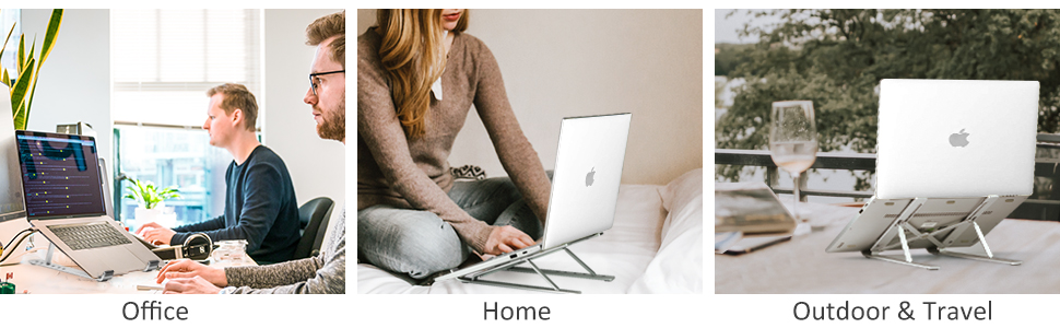 ✈️ Ultralight & Foldable. Your Perfect Travel Companion. At just 0.8 lbs and folding down to a compact 9.52" × 2" × 0.9", this is the go-to laptop stand for remote workers, digital nomads, and frequent business travelers. Collapses in seconds and slips into the included durable carry sleeve — ready whenever your next destination is.